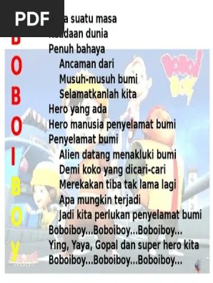 Met siang gan, kali ini ane mw bagiin lirik lagu boboiboy yang . Lirik lagu adu du versi boboiboy.